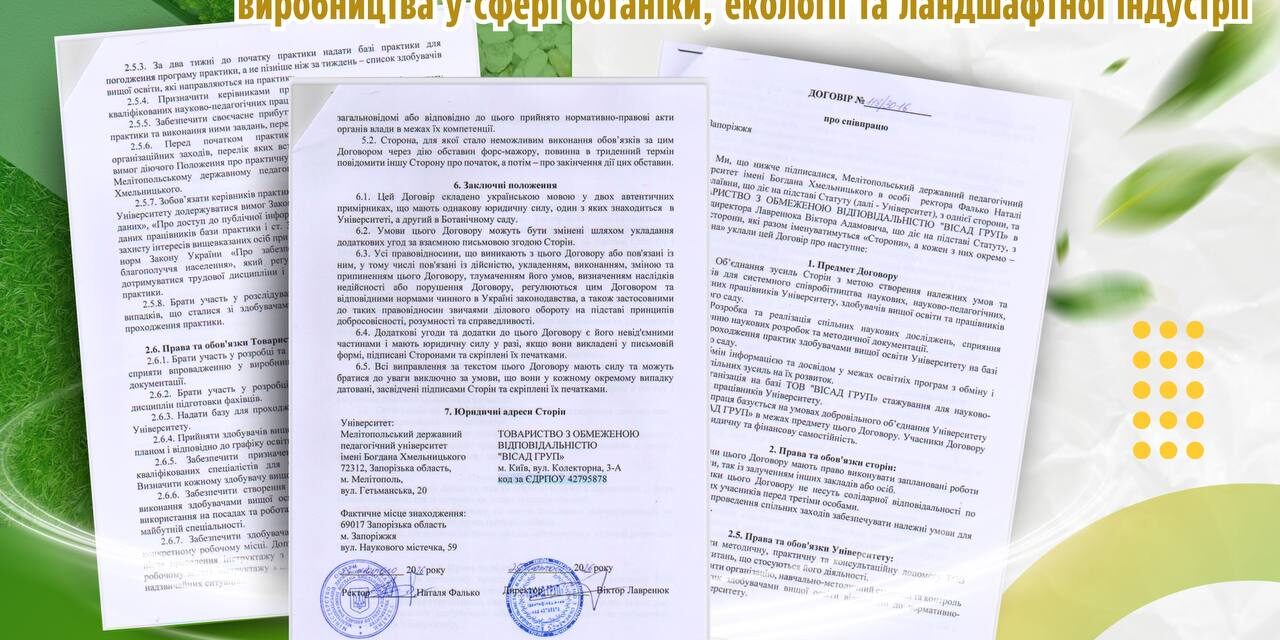 🎓📌Укладення договору відбулося в межах розвитку співпраці кафедри ботаніки, екології та садово-паркового господарства та за сприяння старшого викладача кафедри, доктора філософії Каріни Моложон, яка ініціювала та підтримала налагодження партнерського діалогу між університетом і представниками галузі!