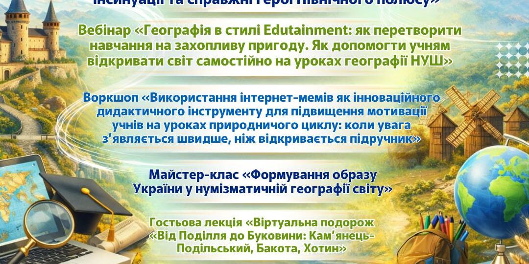 2️⃣Вівторок, 24.03 – Вебінар «Географія в стилі Edutainment: як перетворити навчання на захопливу пригоду. Як допомогти учням відкривати світ самостійно на уроках географії НУШ»