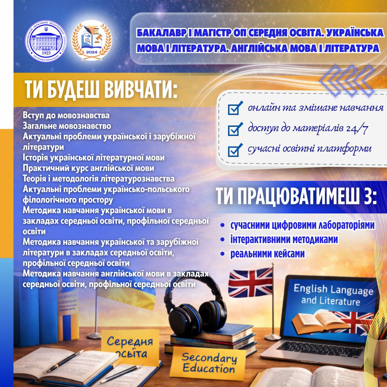 ✔️ Середня освіта. Українська мова і література. Англійська мова — ОС Бакалавр