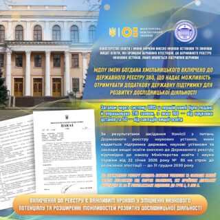 🚀🇺🇦 Включення до Державного реєстру є важливим кроком у зміцненні наукового потенціалу МДПУ імені Богдана Хмельницького та розширенні можливостей для реалізації наукових проєктів, участі в грантових програмах і розвитку міжінституційної співпраці.