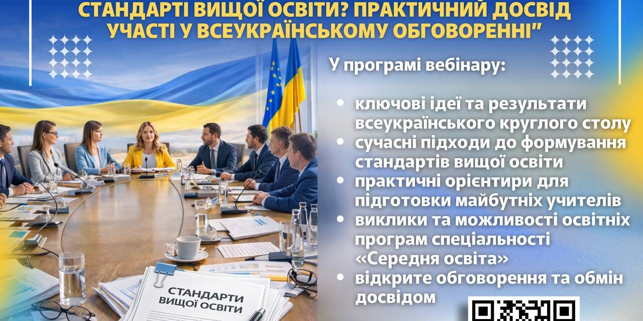 📌 Тема: «Підготовка вчителя: що важливо визначити у стандарті вищої освіти? Практичний досвід участі у всеукраїнському обговоренні»