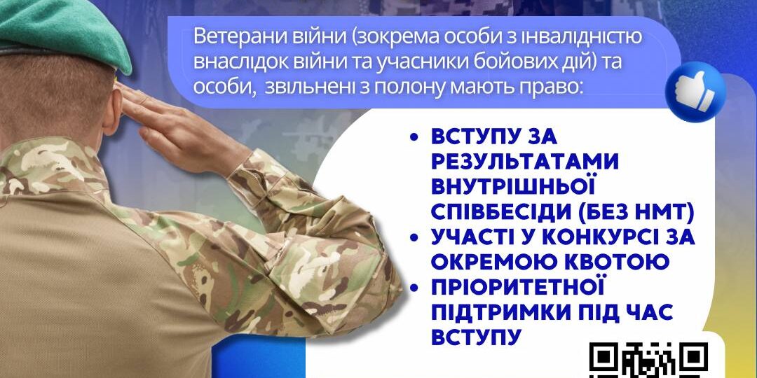 🎓 Для учасників бойових дій, ветеранів війни (зокрема осіб з інвалідністю внаслідок війни) та осіб, звільнених з полону, передбачено: