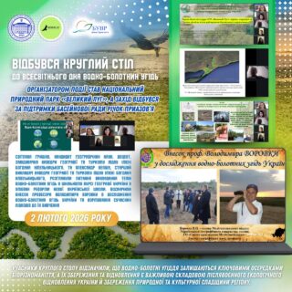 📘🗓 2 лютого 2026 року на честь зазначеної події відбувся круглий стіл «Водно-болотні угіддя та традиційні знання: вшанування природної та культурної спадщини», присвячений Всесвітньому дню водно-болотних угідь і 20-річчю створення Національного природного парку «Великий Луг».