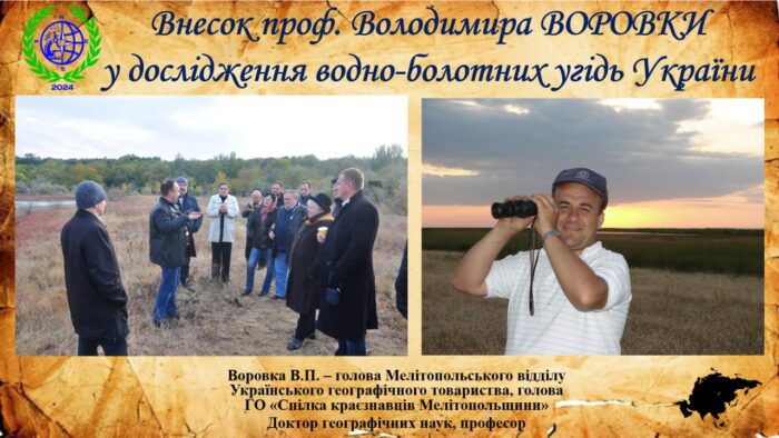 🔹🗺 Світлана Гришко, кандидат географічних наук, доцент, завідувачка кафедри географії та туризму МДПУ імені Богдана Хмельницького, та Олександр Непша, старший викладач кафедри географії та туризму МДПУ імені Богдана Хмельницького, розглянули питання викладання теми водно-болотних угідь у шкільному курсі географії України в умовах реформи Нової української школи. Було відзначено внесок професора Володимира Воровки в дослідження водно-болотних угідь України та формування сучасних підходів до їх вивчення.