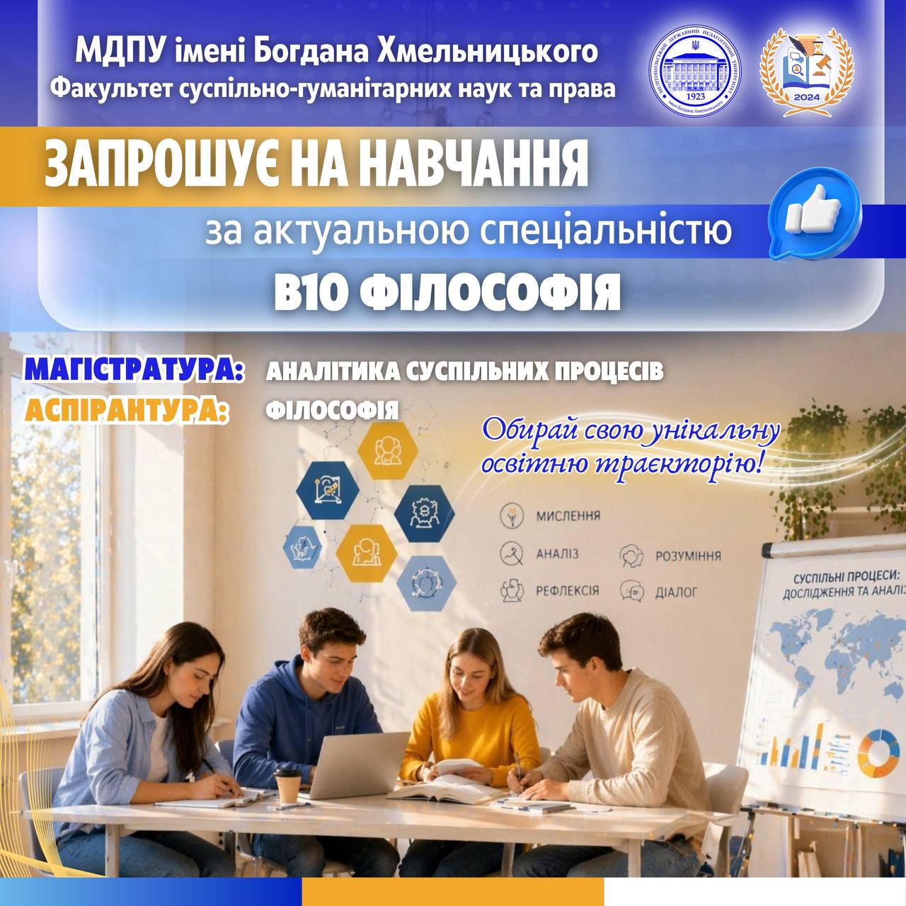 🔥 МДПУ — це твій шлях до професії, де ти аналізуєш, мислиш і формуєш сенси майбутнього!