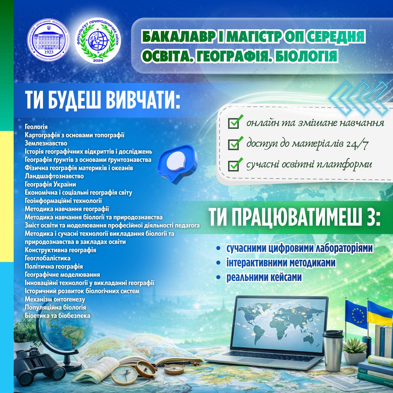 🏛✨ Факультет природничих наук МДПУ імені Богдана Хмельницького запрошує на навчання за сучасною та перспективною спеціальністю: