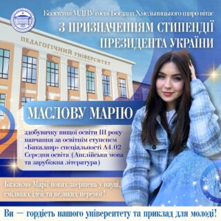 ‼️👏🏻 Відповідно до наказу МОН України №1193 від 29 серпня 2025 року Марії призначено Стипендію Президента України на І семестр 2025–2026 навчального року!