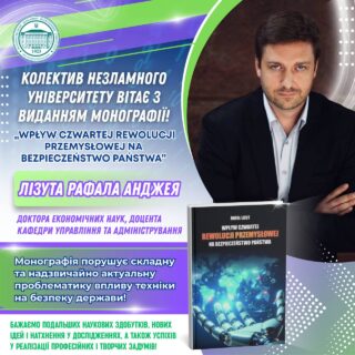 📚🧑🏼‍🎓 Вітаємо доктора економічних наук, доцента кафедри управління та адміністрування Лізута Рафала Анджея з виданням монографії „Wpływ Czwartej Rewolucji Przemysłowej na Bezpieczeństwo Państwa”!