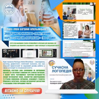 🏛 У Мелітопольському державному педагогічному університеті імені Богдана Хмельницького завершився науково-практичний курс «Сучасна логопедія» обсягом 3 кредити ECTS (90 годин), який успішно пройшли 58 слухачів.